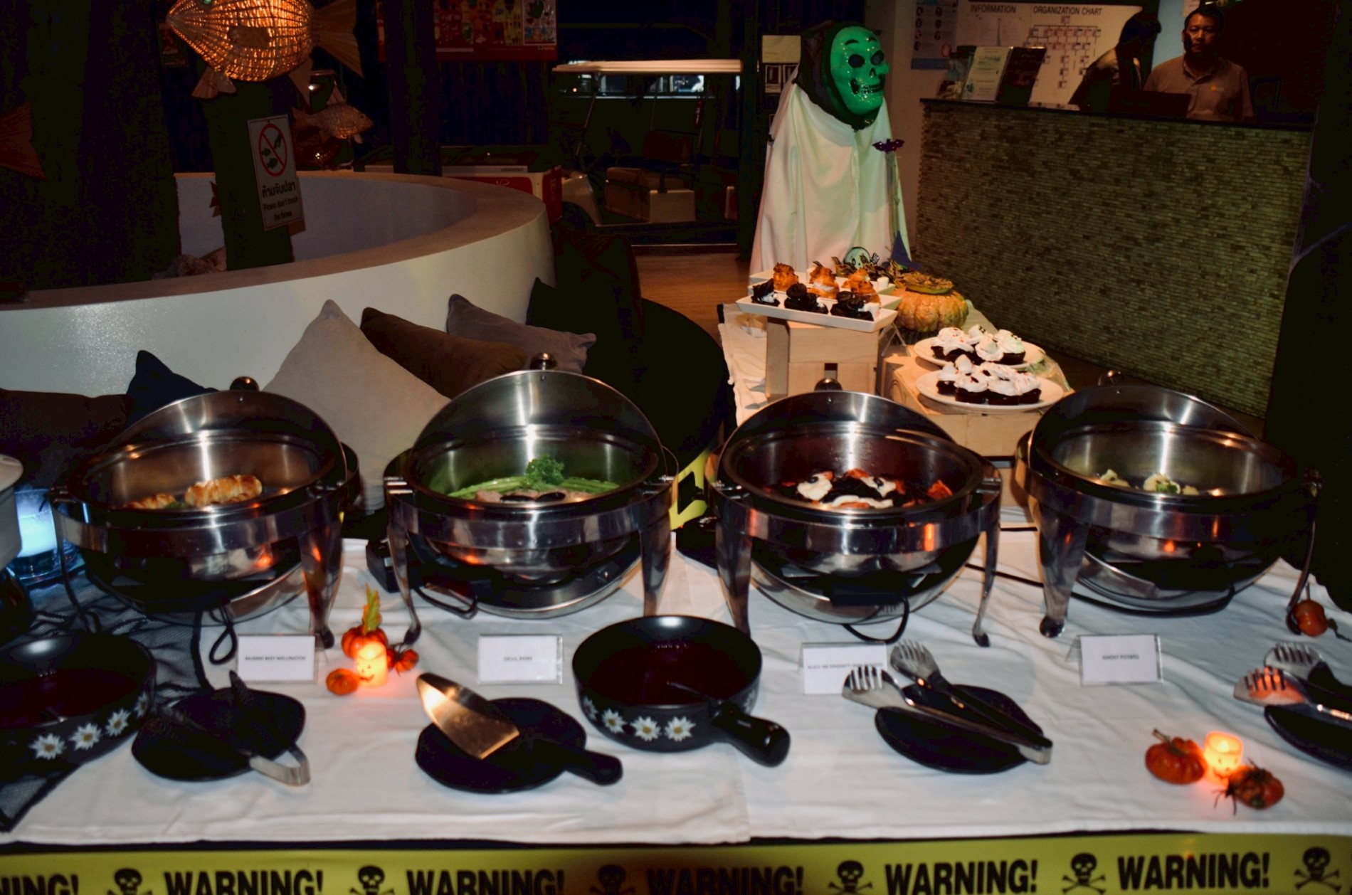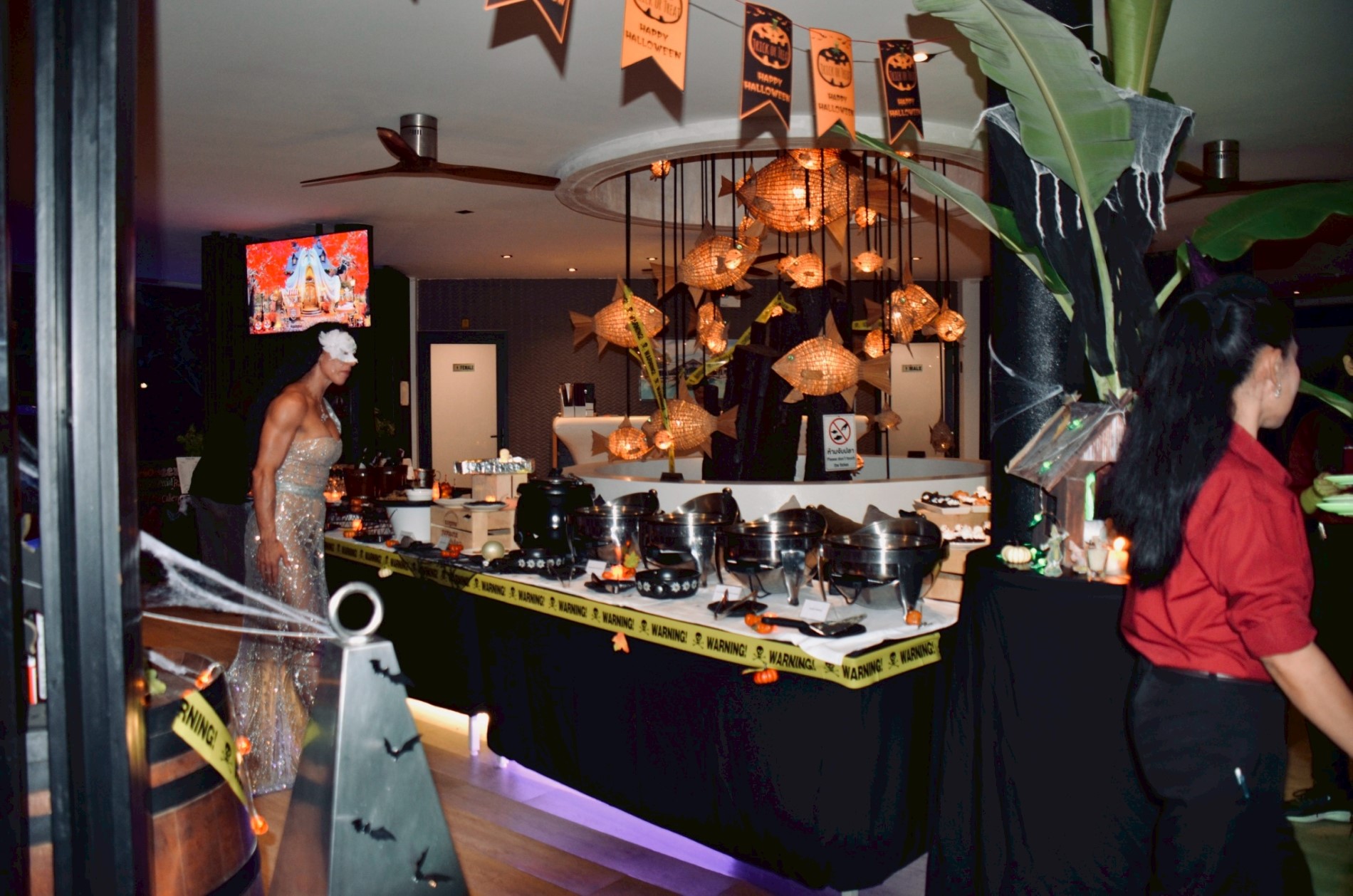 ภาพบรรยากาศจากงาน Halloween Nights Dinner Buffet ที่ผสานประสบการณ์บุฟเฟ่ต์สุดพิเศษเข้ากับบรรยากาศฮาโลวีนอย่างมีสไตล์ พร้อมเมนูอาหารที่คัดสรรอย่างพิถีพิถัน การตกแต่งตามธีม และการนำเสนออย่างสวยงาม สร้างค่ำคืนแห่งความสนุกและความประทับใจที่เต็มไปด้วยเสน่ห์ของเทศกาล